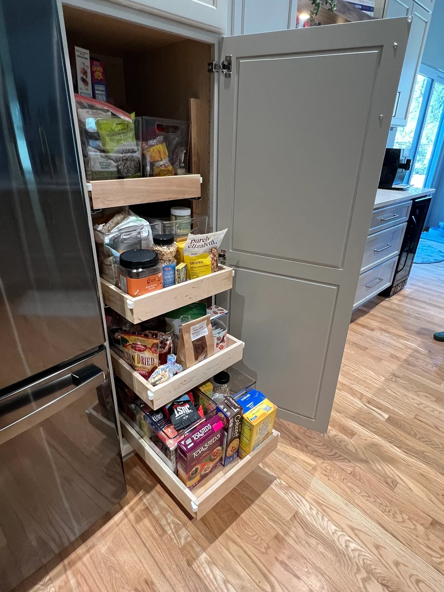 Victoria took all the information and inspiration from Kim—along with measurements of the space—and created a visual layout of her kitchen, complete with 3D perspectives. This allowed Kim to virtually see herself in her new kitchen. Victoria walked Kim through each of her suggestions and aligned the design elements with Kim’s specific needs. Victoria even outlined the function of each cabinet, covering everything from utensils and food storage to pots and pans. Every item had its place in this reimagined space!