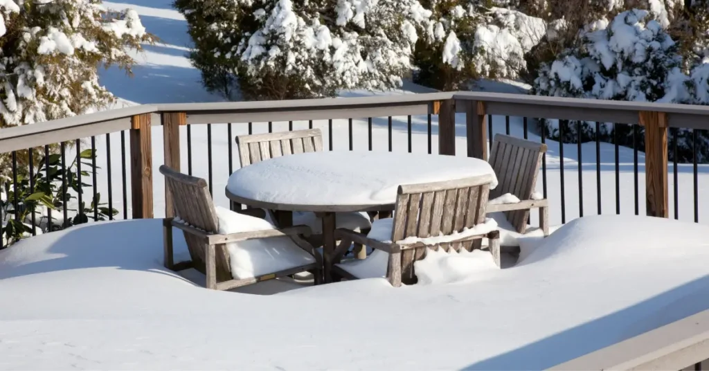 In Iowa, ice and snow are an inevitable part of winter. In anticipation of the year’s first snow fall, sweep your deck and give the surface a good cleaning, making sure spaces between boards are free of debris that could block water from escaping.